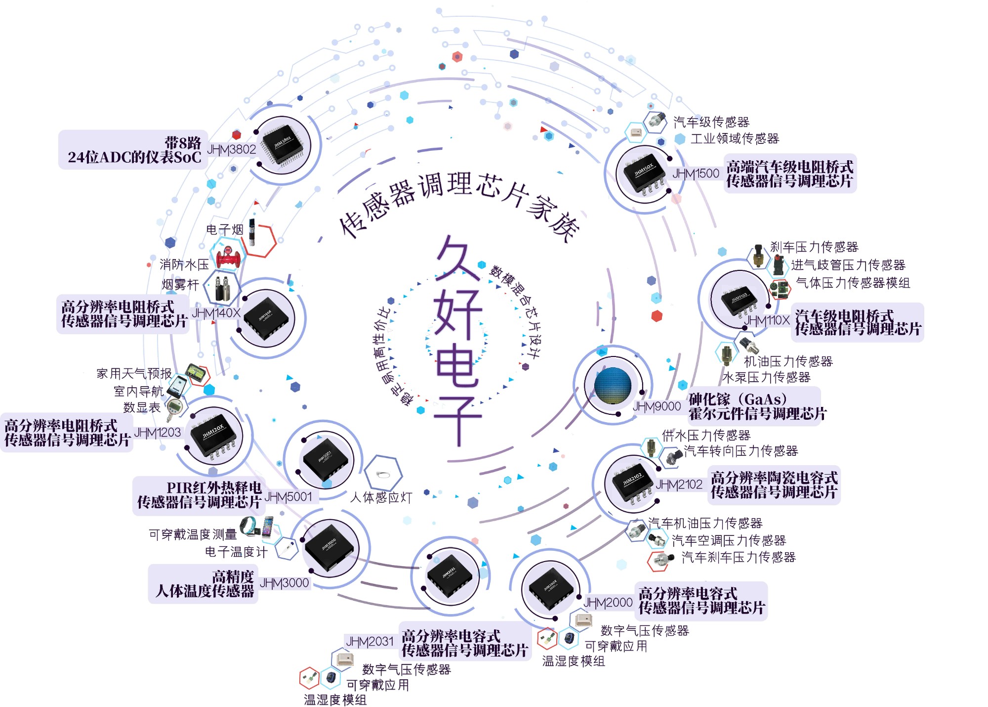 北京久好電子科技有限公司創(chuàng)立于2014年,核心創(chuàng)業(yè)團(tuán)隊(duì)為一批清華集成電路校友。公司專注于數(shù)?;旌蟂oC芯片的設(shè)計(jì)開發(fā),已量產(chǎn)的傳感器信號(hào)調(diào)理芯片系列已經(jīng)廣泛應(yīng)用于壓力、溫濕度、紅外熱釋電(PIR)、溫度和電流等傳感器領(lǐng)域,尤其是在車用壓力傳感器領(lǐng)域取得卓越成果。公司在超低功耗數(shù)?;旌霞呻娐吩O(shè)計(jì)、低功耗SoC系統(tǒng)設(shè)計(jì)、大批量量產(chǎn)系統(tǒng)與信號(hào)調(diào)理芯片的應(yīng)用軟件開發(fā)等領(lǐng)域積累了豐富的經(jīng)驗(yàn),能快速地為合作伙伴提供具有世界競(jìng)爭(zhēng)力的芯片技術(shù)及完整解決方案。